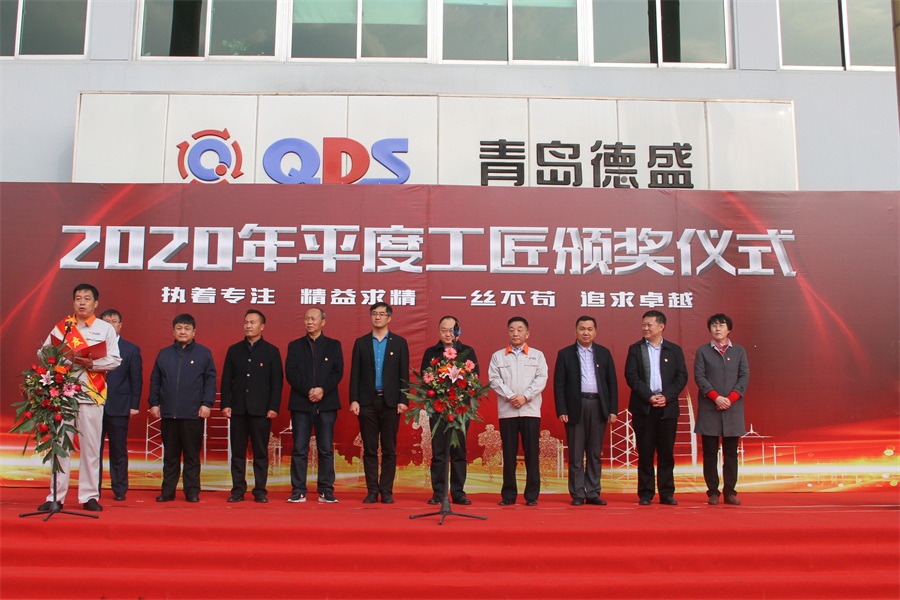11月27日上午,平度市首屆“平度工匠”表彰頒獎(jiǎng)儀式在青島德盛機(jī)械制造有限公司隆重舉行。平度市委常委、市統(tǒng)戰(zhàn)部長、市總工會(huì)主席王富軍同志,青島德盛機(jī)械制造有限公司董事長孫佩璋同志,市委黨史研究中心副主任、市農(nóng)村黨員干部現(xiàn)代遠(yuǎn)程教育管理中心辦公室主任王鵬杰同志,市人社局黨組成員陳希成同志,市發(fā)改局黨組成員、副局長姜學(xué)慶同志,市工商聯(lián)黨組成員方永樂同志,市總工會(huì)黨組成員、副主席趙笑麗同志,市總工會(huì)黨組成員王玉芬同志出席頒獎(jiǎng)儀式,并為獲得首屆“平度工匠”稱號(hào)的10名同志頒發(fā)了榮譽(yù)證書和獎(jiǎng)金,為獲得“平度工匠”提名獎(jiǎng)的10名同志頒發(fā)了榮譽(yù)證書。