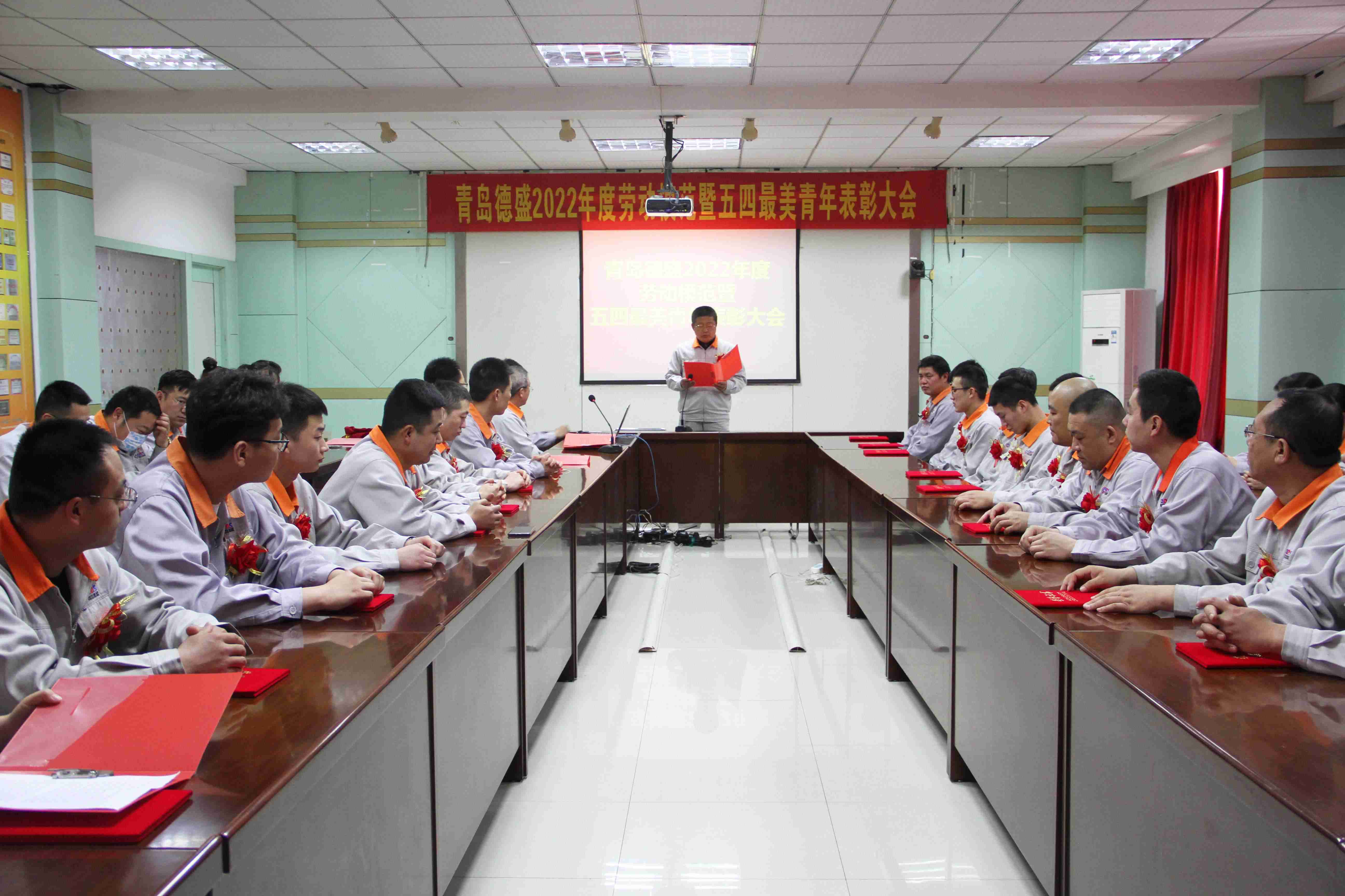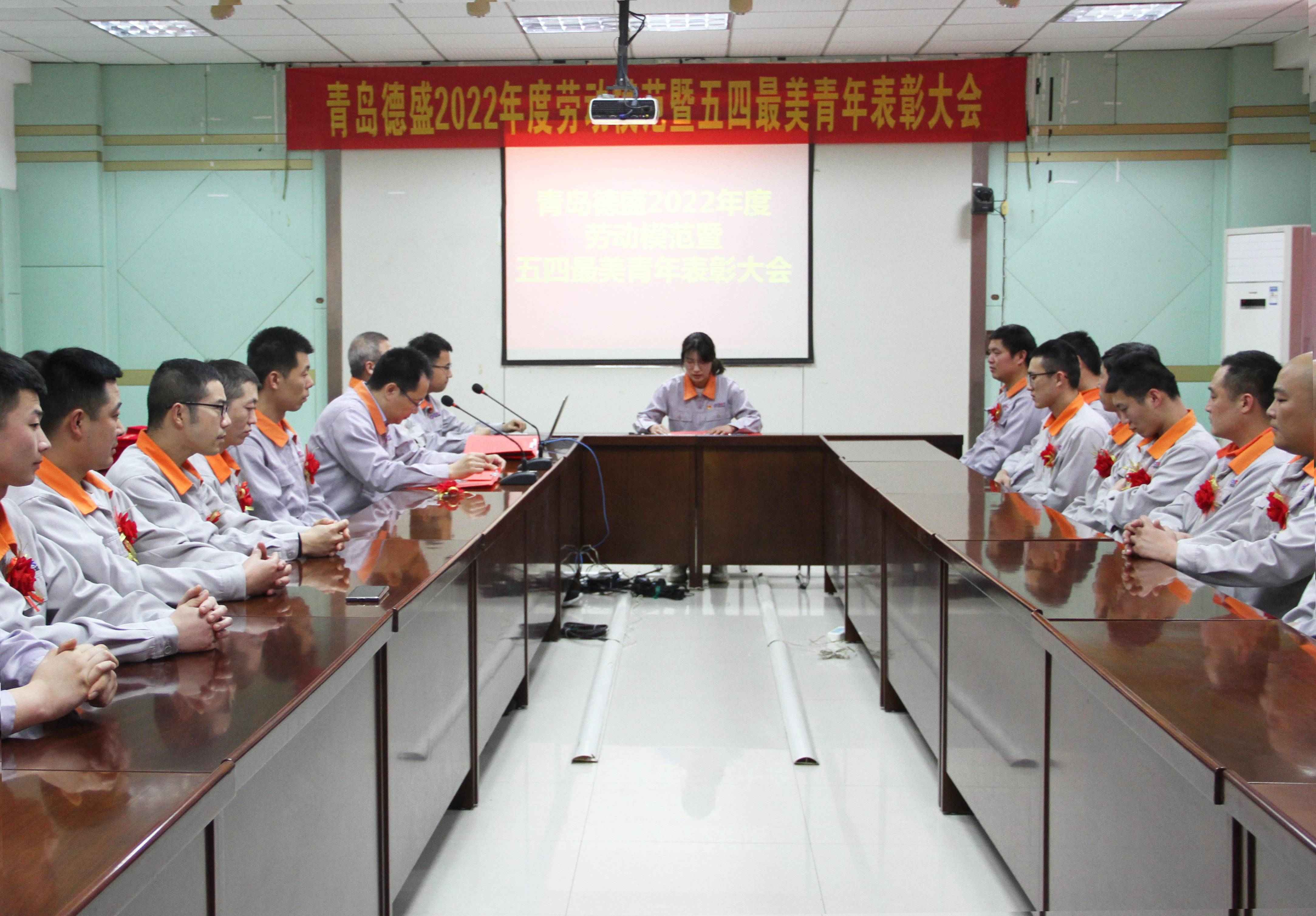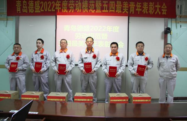 4月29日下午14:00,在“五一國際勞動節”和“五四青年節”來臨之際,公司召開了“青島德盛2022年度勞動模范暨五四最美青年表彰大會”。黨委委員、團委書記李超主持大會,公司黨委書記羅賽宣讀公司《關于表彰“勞動模范”的決定》和《關于表彰“五四最美青年”的決定》,并與黨委副書記、工會主席李建平分別為八位“五四最美青年”和十三位“勞動模范”頒發榮譽證書和禮品。