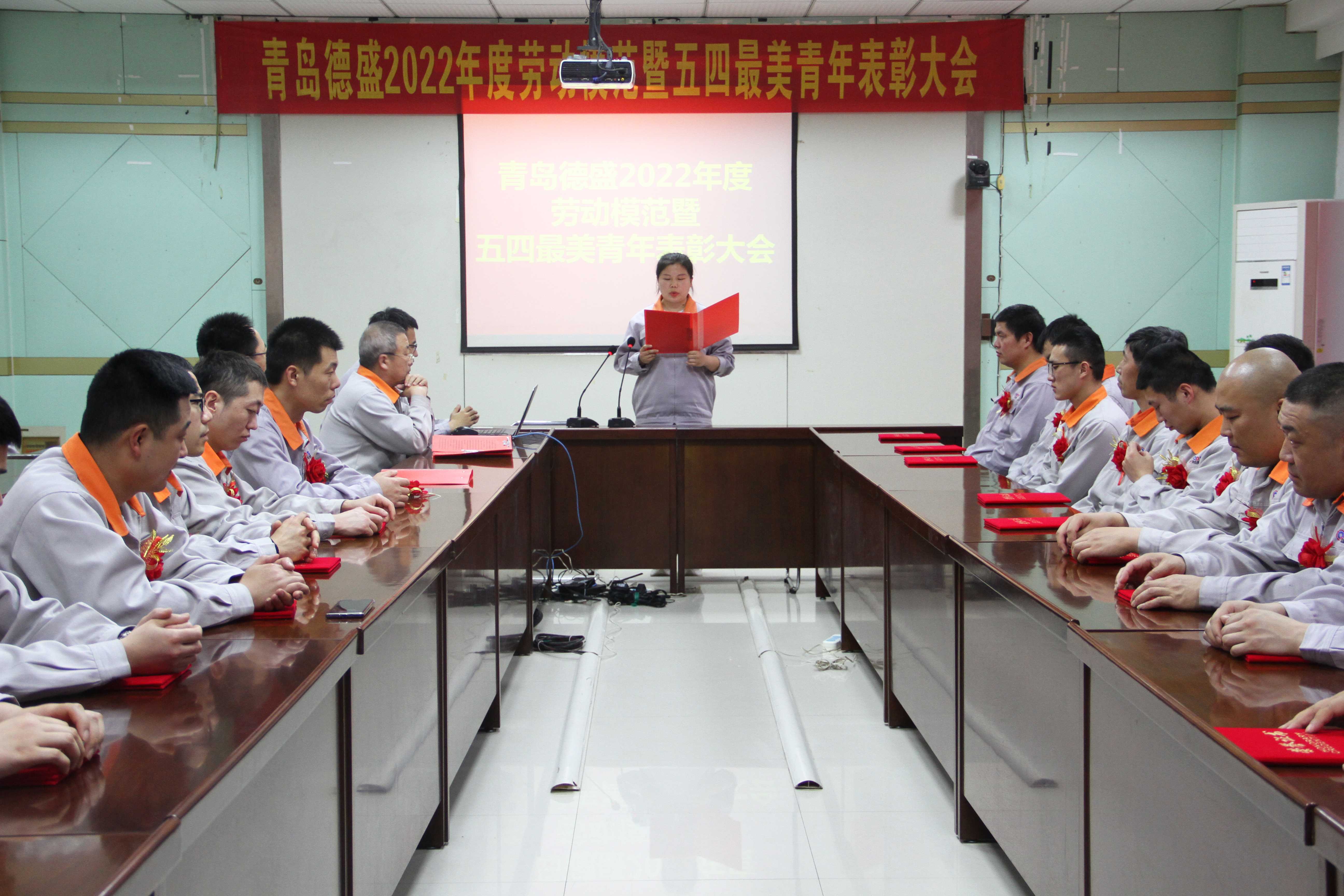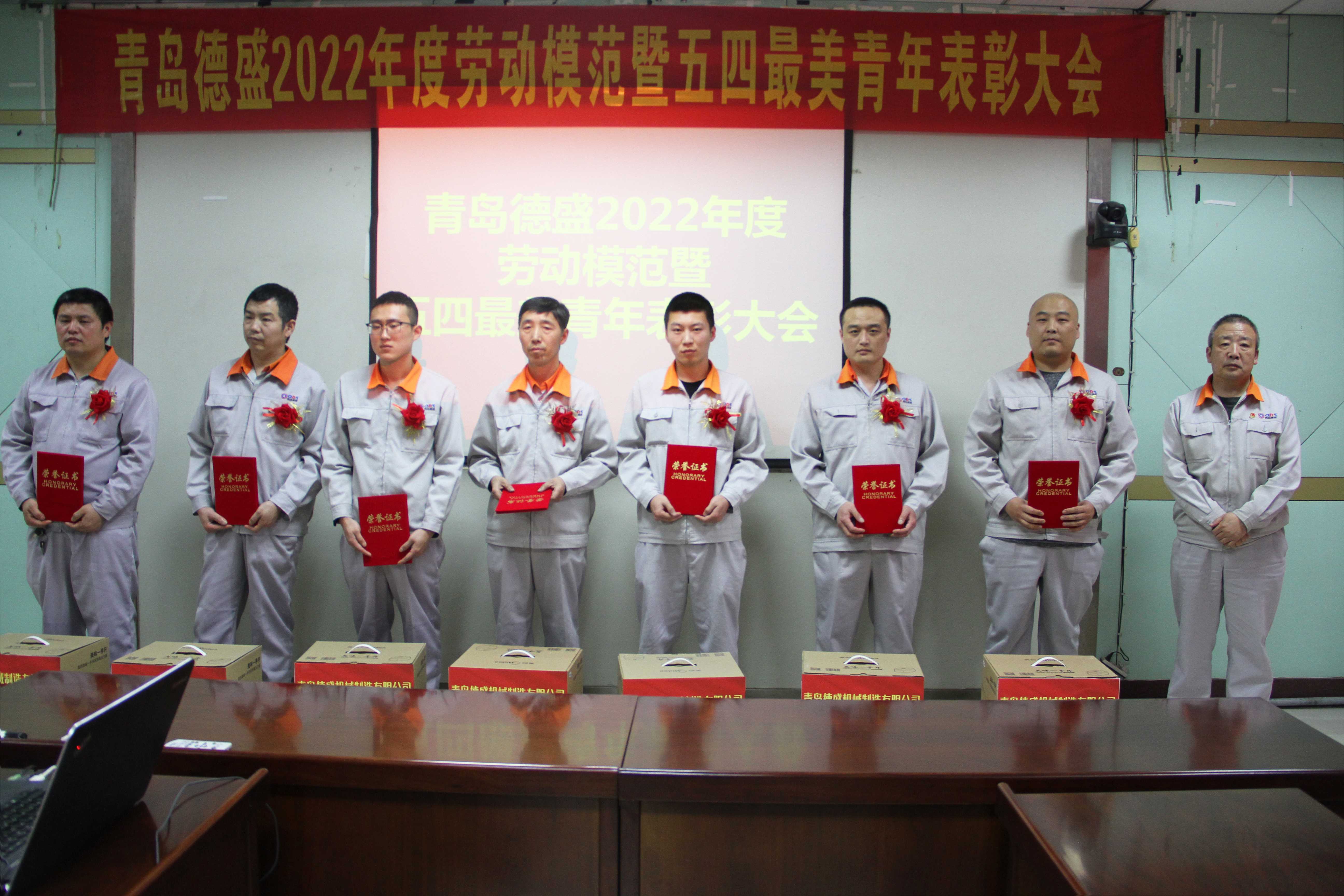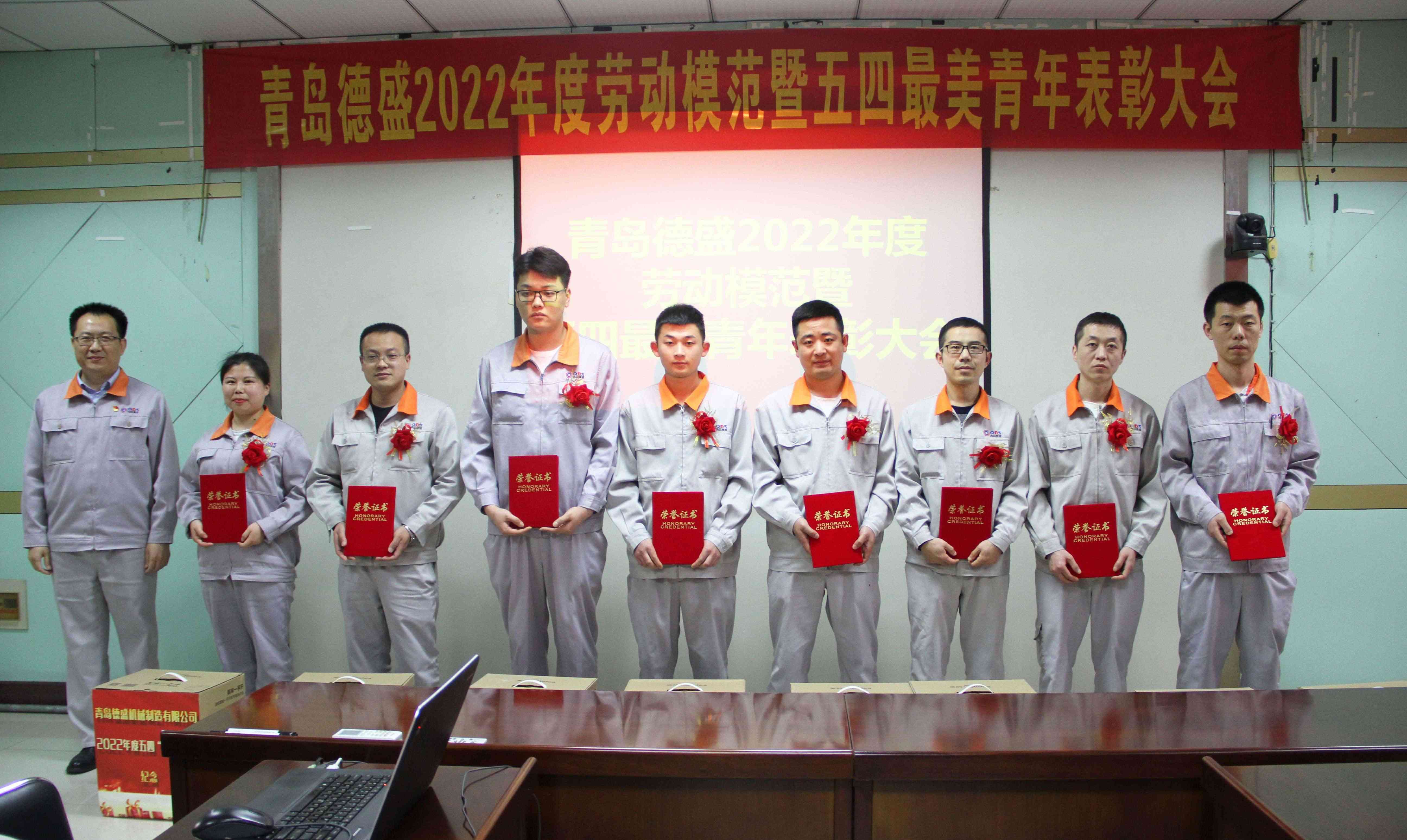 4月29日下午14:00,在“五一國際勞動節”和“五四青年節”來臨之際,公司召開了“青島德盛2022年度勞動模范暨五四最美青年表彰大會”。黨委委員、團委書記李超主持大會,公司黨委書記羅賽宣讀公司《關于表彰“勞動模范”的決定》和《關于表彰“五四最美青年”的決定》,并與黨委副書記、工會主席李建平分別為八位“五四最美青年”和十三位“勞動模范”頒發榮譽證書和禮品。