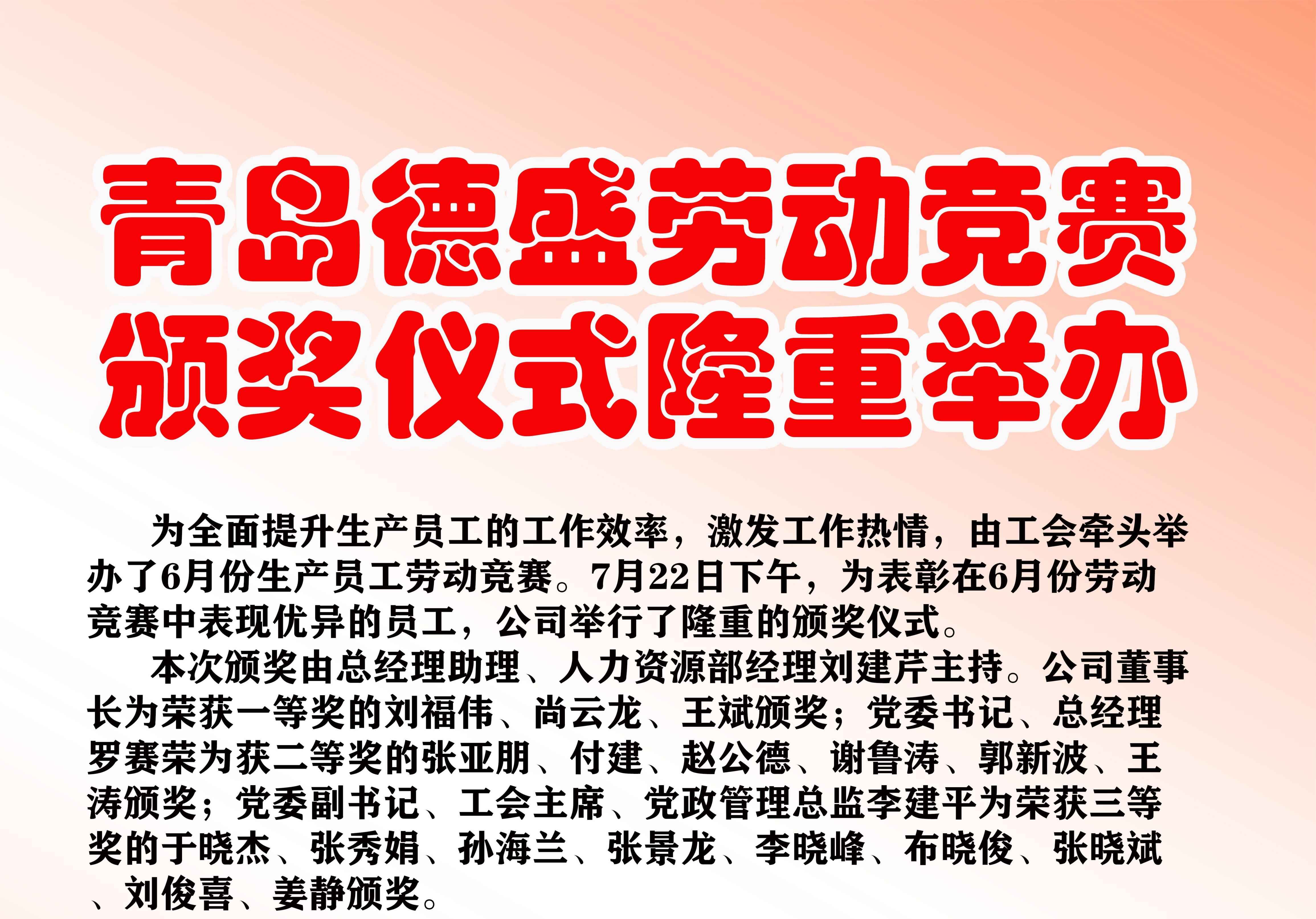 青島德盛勞動競賽頒獎儀式隆重舉辦